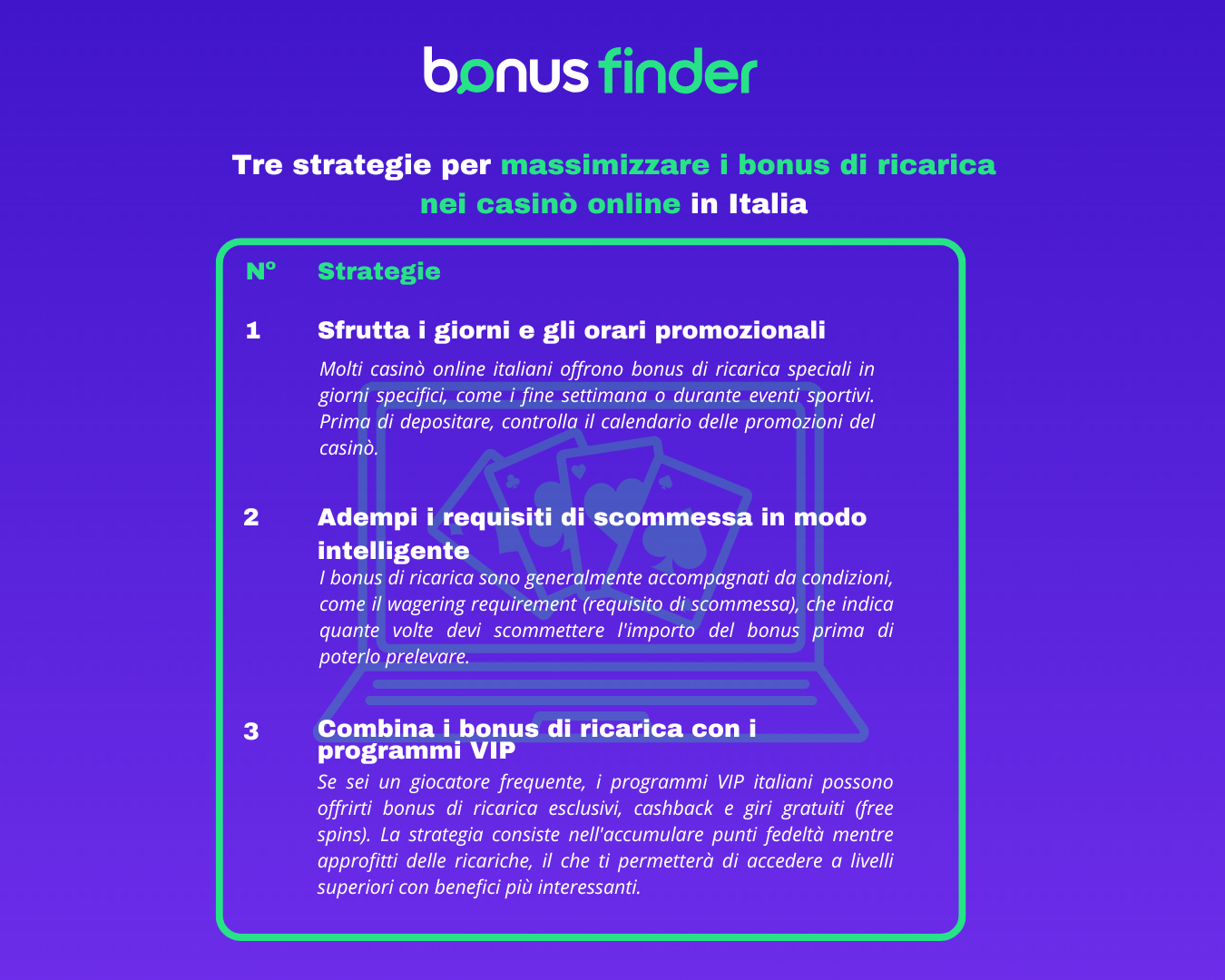• Strategie per Massimizzare i Bonus di Ricarica nei Casinò Online in Italia